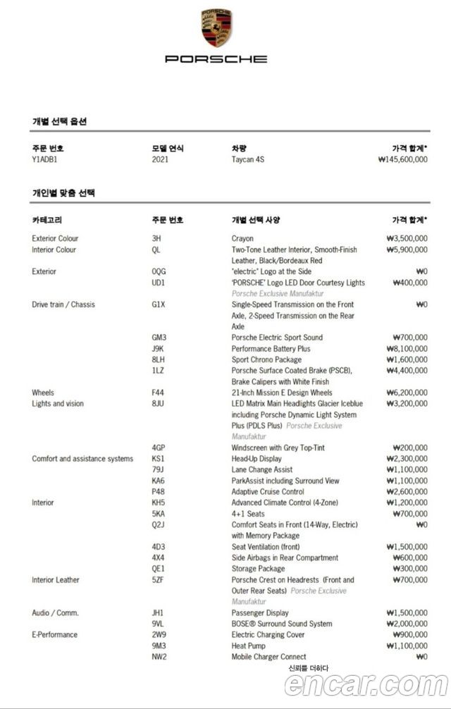 Porsche Taycan из Кореи Encar